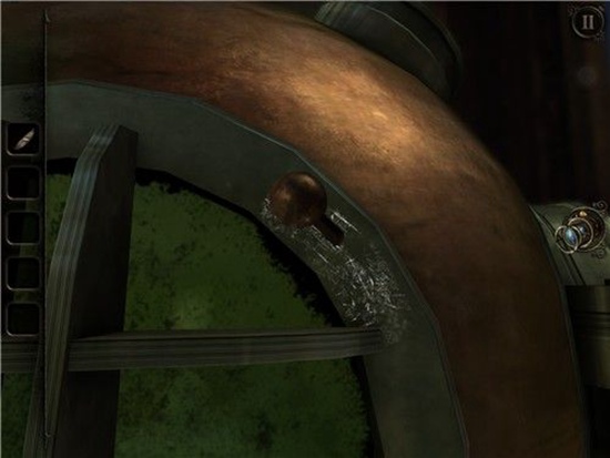 在沙盘上找到水车,转动,旁边的小门会打开,通过透视镜进入。