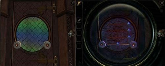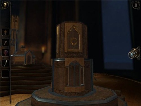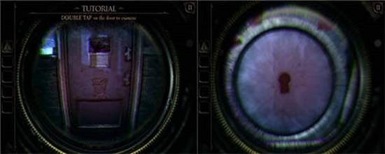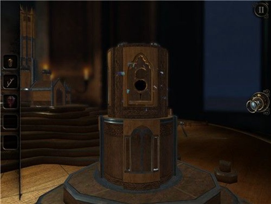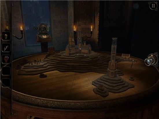 用钥匙打开沙盘上一座建筑的锁孔,出现另一个小洞,通过透视镜进入。