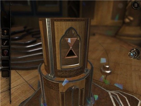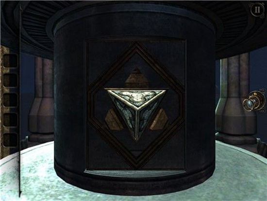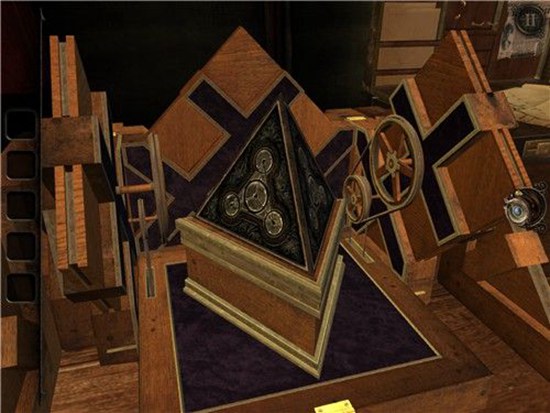 机关盒上出现了钥匙孔,用刚才的钥匙将其打开。出现一个三角锥物体,收好。