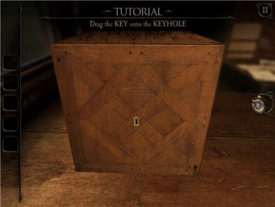 一个机关盒莫名出现在桌子上,上面还有一把钥匙。捡起钥匙收起来。机关盒很神秘,应该拿出透视镜看看。