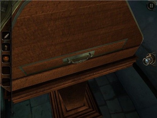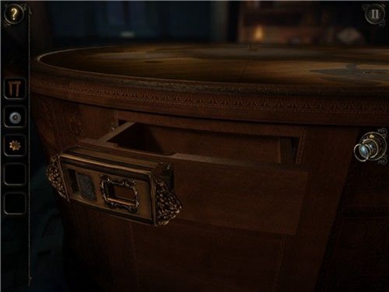 退回,圆桌上有个抽屉,打开(注意要用两只手哦)。一块齿轮型木块,拿起收好(手速慢了,没截到图,抱歉~~~)。