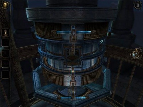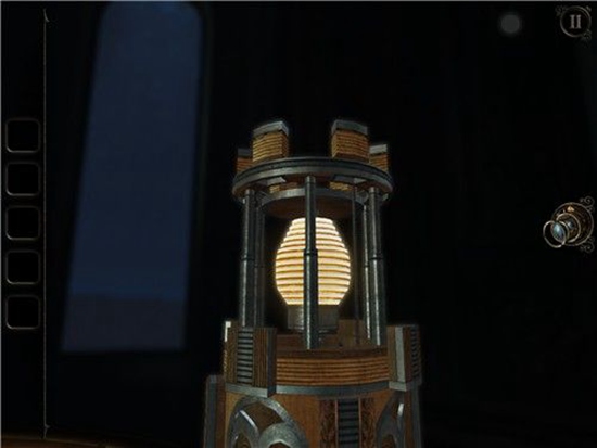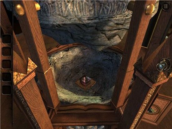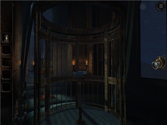 拿到灯后,我们面前的沙盘变成了一个铁笼,类似于电梯,中心是一个方向盘状的金属。