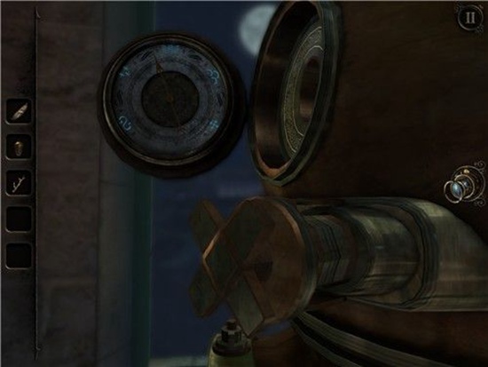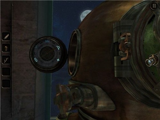 拿到指针后,回到头盔处,把指针放在下图的圆盘里,此时圆盘下面的旋钮启动,可以旋转旋钮来移动指针了。