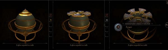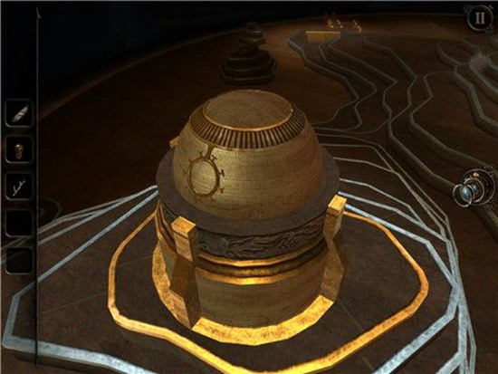 回到沙盘,先把千米得到的木块放在下图缺口中,启动机关,出现一个球形物体。