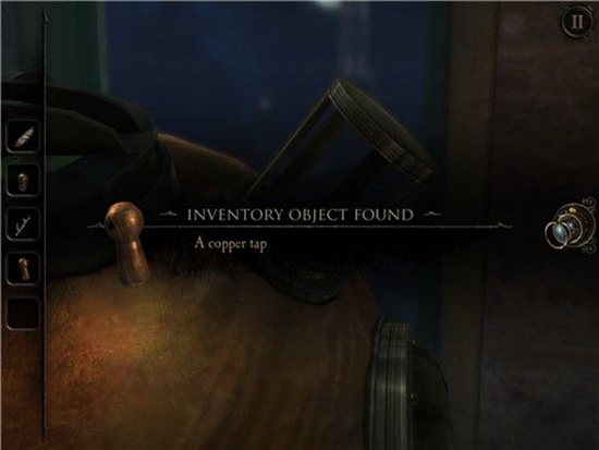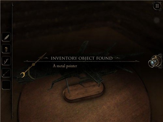 转到左边,根据话语提示,选择羽毛笔。再向左转,选择怀表,再向左转,选择空气。