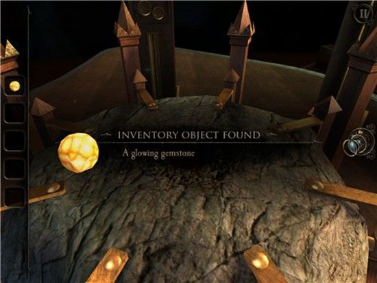 这时,上方的石块开始闭合,从石块最上方我们拿到一块发光的宝石。
