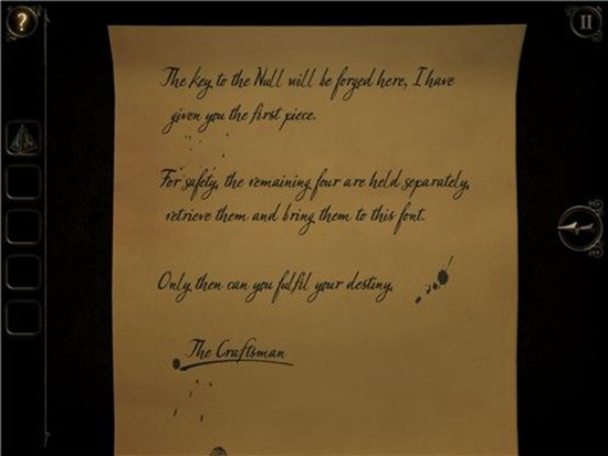 走出房门,来到大厅。走近水池,有一封信在水池边缘,打开。