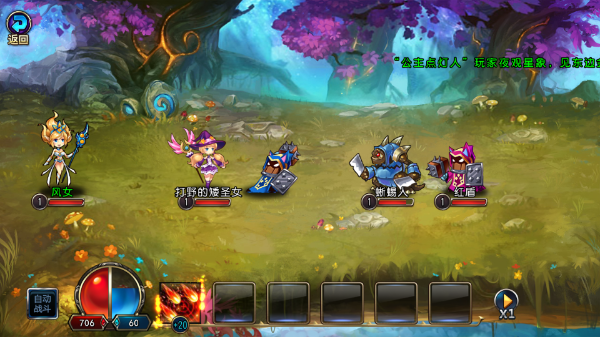 开始战斗,进入新手教程,带上你的队友点击下方的技能攻击敌方,也可点击自动战斗。