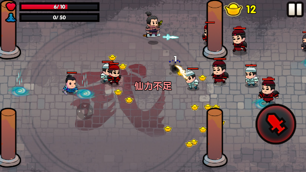 滑动左边的摇杆,点击右边的攻击键,击杀敌人的同时尽可能的拾取元宝。