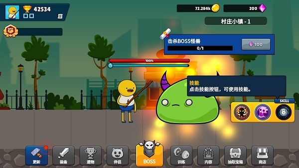 BOSS需要主动点击,在此你可以释放技能,秒杀BOSS。同样会获得丰厚奖励!