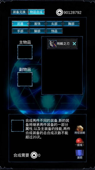 铸造场:主要用于装备的兑换和物品的合成,装备合成主物品会继承副物品的部分属性,但装备合成不能超过20次。