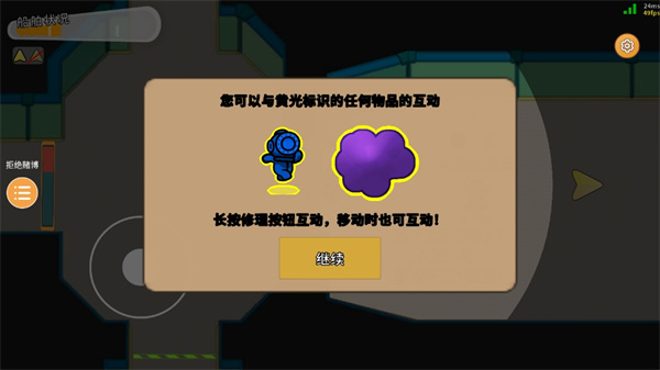你可以与黄光标识的任务物品的互动,长按修理按钮互动,移动时也可以互动;