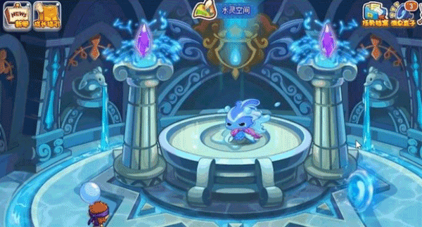 玩家进入水晶神殿内,找到并点击水灵兽。