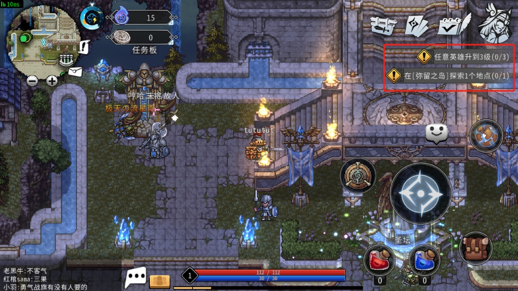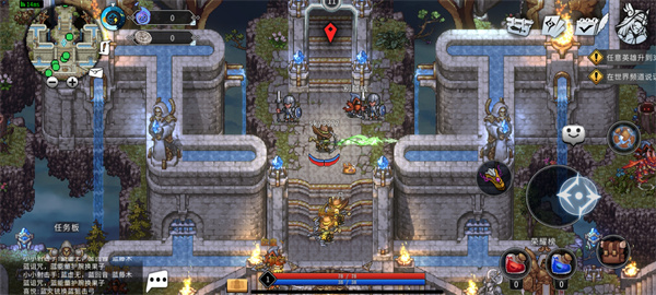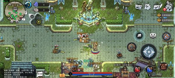 进入游戏后,左边控制角色的移动,而右边则是攻击、背包等按钮;