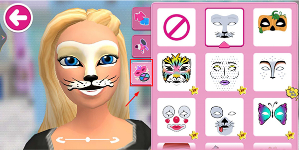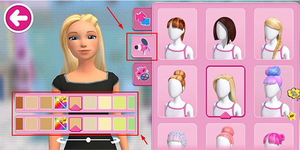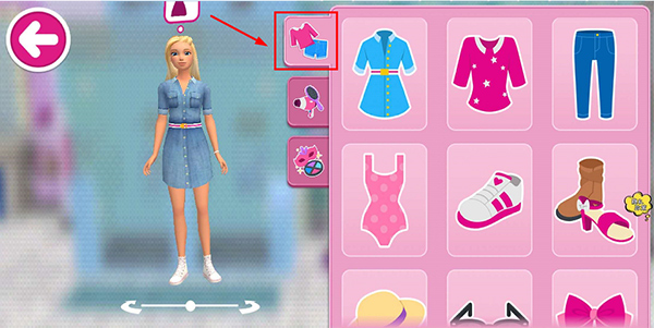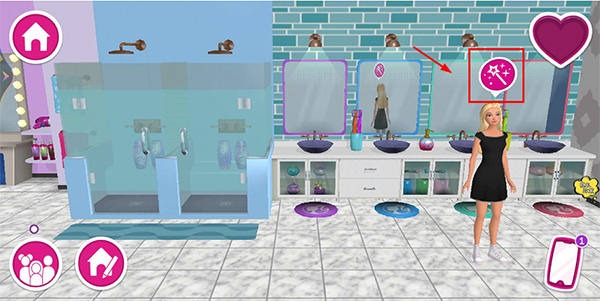 进入芭比梦想豪宅游戏,点击芭比头上图标,即可进入芭比换装页面