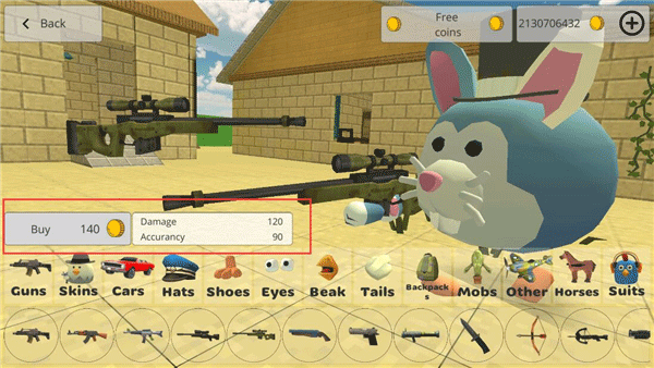 点击相应的武器上方即可出现购买需要的金币以及武器的属性,点击Buy即可购买;