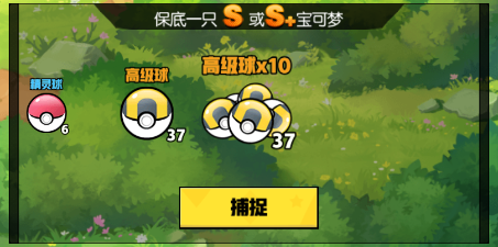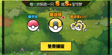 每10次保底一只S或S+宝可梦,每24小时可以免费捕捉一次