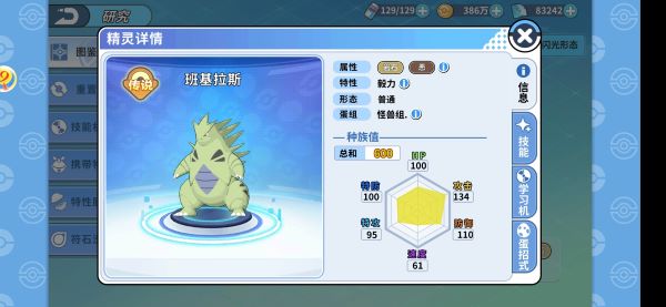 在传说级宝可梦中,强度是仅次于神话级的存在,如果集中资源养它的话不管是推图还是和其他玩家PK都可以轻松应对。