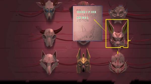来到神案左边点击书中对应的面具,点击眼睛,根据上面得到的字母,依次点击对应的字母SACRIFICEANGEL,获得线索:一张卷轴。