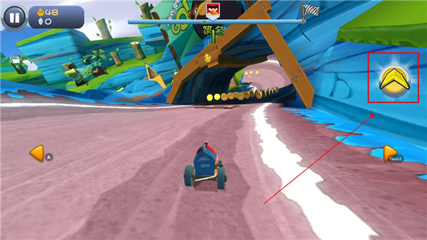 如下图所示,发射成功后玩家们可以通过屏幕的虚拟按键来操控卡丁车进行移动;