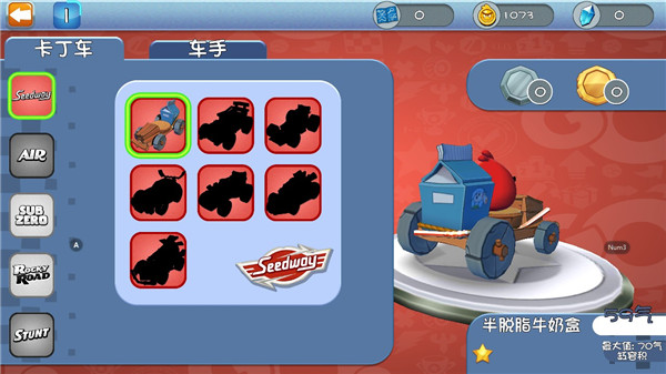 而在卡丁车界面,玩家们可以选择并解锁自己喜欢的卡丁车和角色;