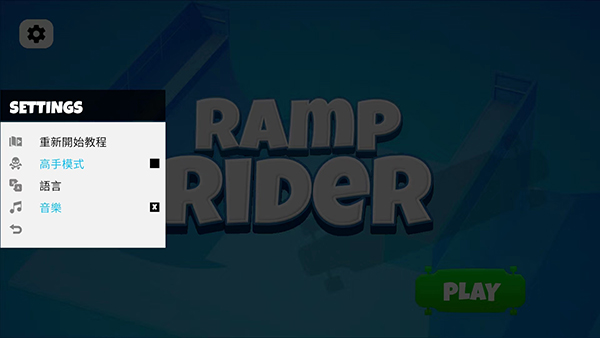 打开坡道滑板游戏最新版,进入游戏主界面,首先我们选择左上角的【齿轮】图标进入设置界面,