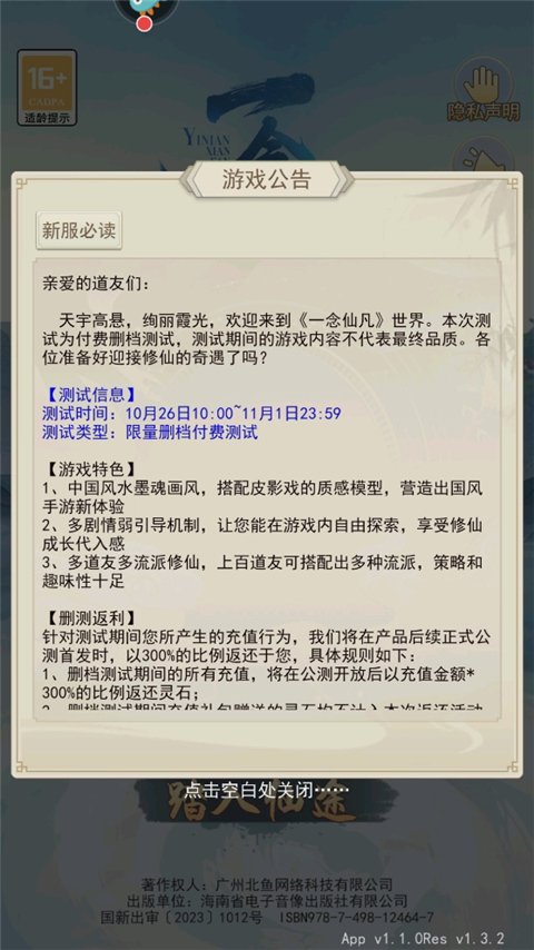 加载完毕之后点击“踏入仙途”按钮。