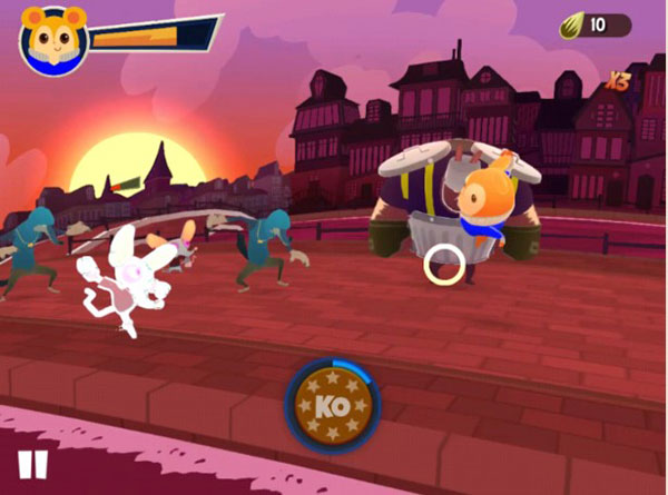 这是一款充满浓浓中华功夫气息的动作冒险类型的手机游戏,可以看来老外们对中国功夫的了解还是下了一定决心的。甚至可以知道功夫已经对他们留下了不可磨灭的印象。游戏的主角是一个功夫街的小仓鼠,不知是从哪一天开始一些疯狂的当地黑帮盯上了这里的资源,他们无恶不作总是暗地里破坏群众的物资,直到某一天玩家们对它们发起了进攻。