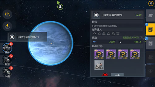 任务奖励可能受到多重影响,包括星系内军团设施带来的增益,星系活跃度过高时带来的减益等等;此外银河大议会颁布的激励法案,使任何一名指挥官每天完成的前5个任意星系任务将可以获得翻倍的任务奖励。