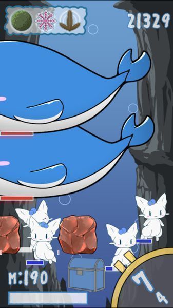 1、游戏开始时,你会看到一群可爱的海猫酱正紧张地守护着它们的宝藏,周围不断有危险的海洋生物靠近,需要你立即采取行动;