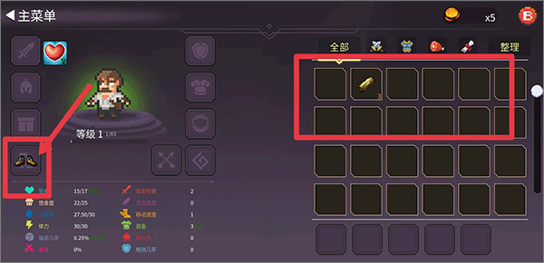 若获得道具后,可以点击右上角背包按钮进入背包详情界面,然后点击道具将它装备在角色身上;