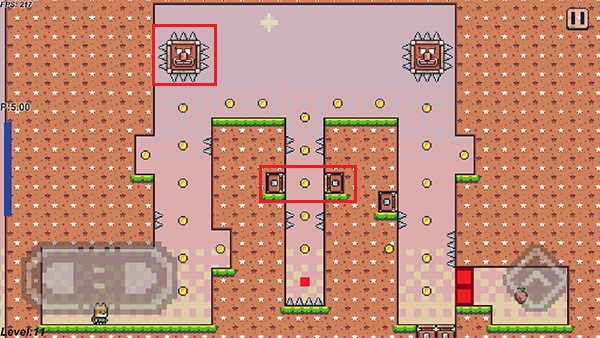 游戏关卡内还有各种障碍,比如尖刺等,不要碰到他们,否则就会失败,需要重新闯关。