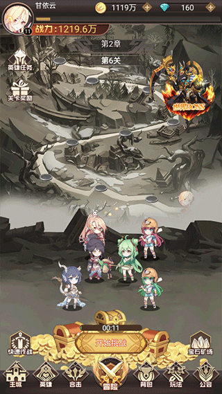 新手前期多玩“冒险”关卡,迅速累积经验,为了后面更好的发育;