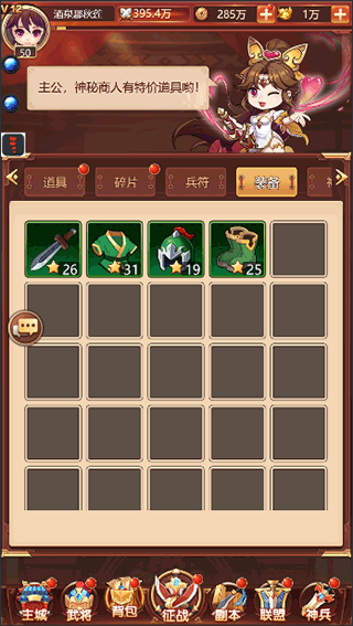 【装备】能直接提升武将的【攻击】【生命】属性,可通过【征战】掉落、【铁匠铺】合成等方式获得。