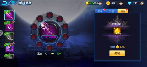 强化装备等级。消耗金币可提高装备等级,是最直接的提升装备属性的方式,为了方便镇魂师们强化装备,我们还提供“一键强化”功能哦!