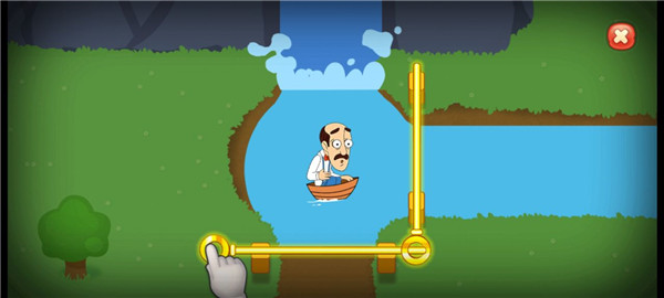 玩家需要巧妙移动关卡堵住污水和砸死鲨鱼最终走到终点
