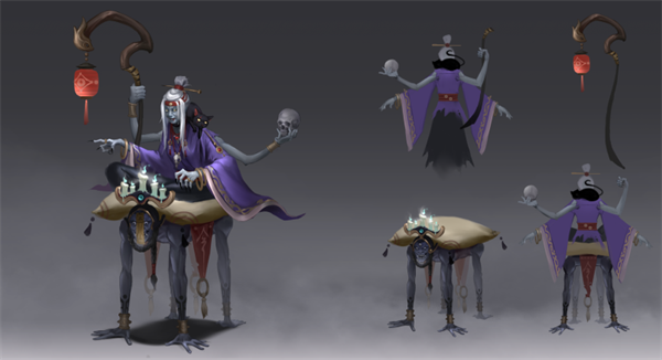 头发花白的老婆婆拄着拐杖,一步步从黑暗的房间内走出来,身形虽然佝偻,但身下却骑着一只人面兽身的妖魔。她睁着眼微笑着,一双眼珠被厚厚的白色覆盖着,看上去十分邪诡。“踢踏踢踏”的脚步声在寂静的漆黑之中尤其响亮,她的眼珠不知道什么时候改变了方向,此刻居然正直直的看着前方,慢慢地,嘴角勾起一丝意料之中的笑容,巍巍颤颤地说道:“你的背后有邪灵跟着…需要神婆我帮你驱邪吗?”