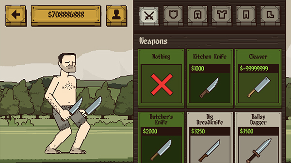点击中间的开始战斗即可开始游戏,上方从左到右依次为训练场、武器、人物。