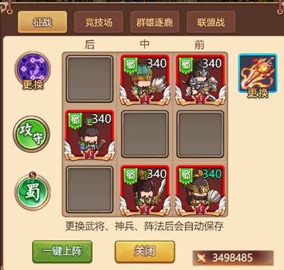 队伍的搭配是一个公式,很多概念都是模糊的。玩家需要根据自己的武将库进行搭配选择尝试。同时,需要在配将中做出取舍,比如舍掉部分输出来增加续航能力,或者增加输出以改变单核输出的策略。