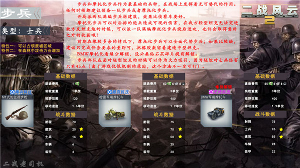 步兵作为战场上最重要、最前期的兵种,玩家了解也是最多的,毕竟不一定造得到虎式,但一定能造出步兵。