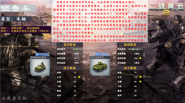 老司机在这里要严肃地指正这个错误,侦察车和装甲车并不是打仗用兵,而应该在战场上充当移动视野的功能。在双方交战之时,应该灵活地运用侦察车去探明敌方视野,观察前方是否有敌方的援军,后方是否有人包抄等等重要的战略信息。