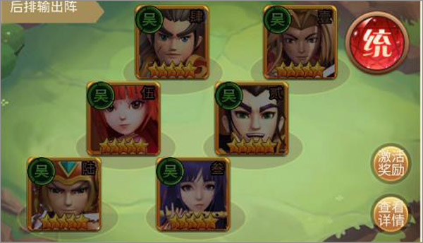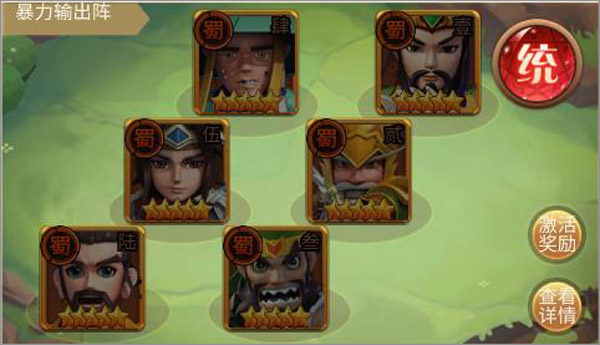 黄忠、张飞、赵云拥有强大的输出能力,庞统的增加攻击光环效果,使得输出更加暴力,力求快速斩杀敌人,解决战斗,刘备的强大的治疗和收到技能伤害给全队回血的能力,保证了队伍的存活能力。