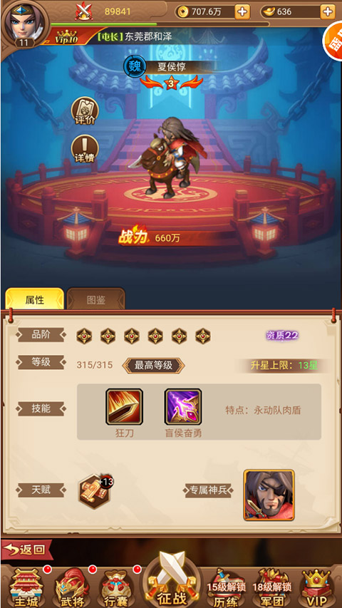 三号位夏侯惇,释放技能攻击敌方纵排,并回复自身血量,还拥有反伤能力,可以克制敌方单秒将;