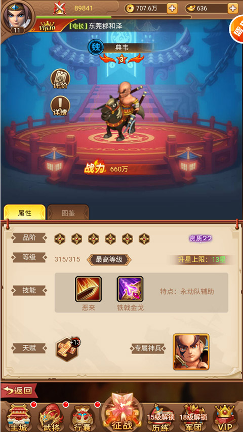 五号位典韦,释放技能攻击敌方后排单体武将,并且无敌保护血量最少的队友,具有强大的保护能力;