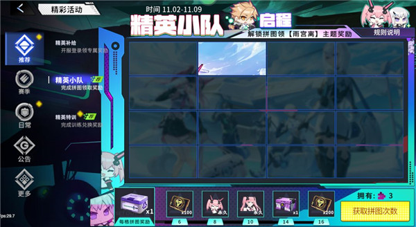 完成指定任务可获得拼图次数,累计拼图次数达到10次即可获得,也就是需要完成10次任务,最快在开服第四天即可获得。