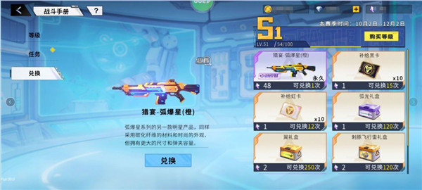 通过完成新兵手册任务,可以获得三把永久武器,分别为卓越级主武器M4-弧爆星、史诗级副武器激光剑-弧爆星、闪光弹-弧爆星、战备道具闪光弹-弧爆星。