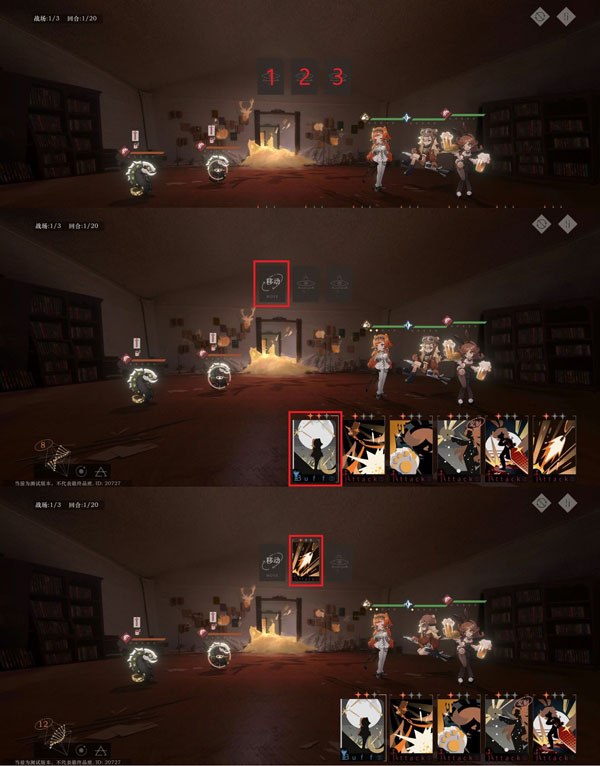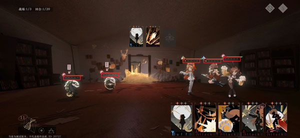 整个游戏就战斗规则上来说其实是比较简单的,编队三个人(n),站位目前没发现有什么讲究。回合开始补充手卡到7张(2n+1),然后打3张(n),点击敌人可以设定目标,在双目标卡使用的时候并不能选择次要目标,而是随机打击,稍显遗憾。