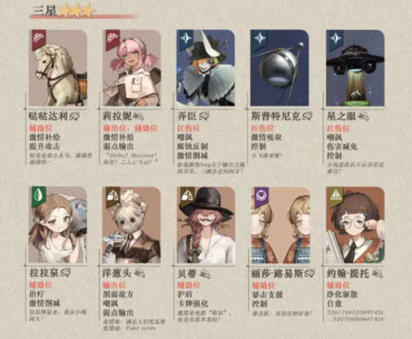 再者就是合理分配卡牌位置,在满员的前提下,抽卡时,抽到二星卡的概率微乎其微,而减员会提高抽到高星卡的概率(但也减少了手卡上限以及出卡次数,减员1人,手卡上限-2,出卡次数-1)。又考虑到只有两张同星同名卡相邻才能合成,因此,绝大部分都是抽一星卡的情况下,如果高星卡在中间,低星卡在两侧,就会出现121这种不方便合卡的尴尬窘境,相反的,如果高星卡在右侧,低星卡在左侧,抽卡时就能出现112的情况,运气好是同名卡的情况就能直接合成成2星卡。因此找准时机打出位置不好的高星卡,或者是切场景前改牌序等等手段,都能大幅提高合卡的流畅程度。
