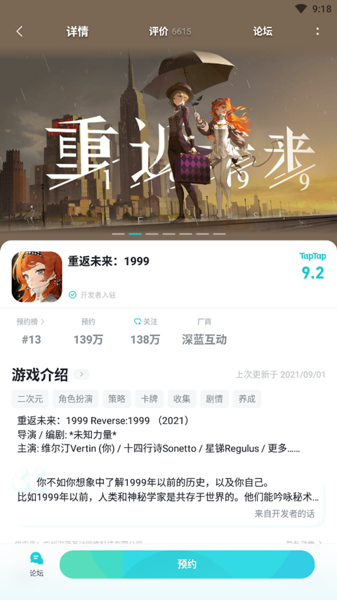 重返未来1999这一备受瞩目的策略卡牌回合制对战手游,以英伦复古风情为底蕴,融合现代审美,烘托出独具特色的游戏氛围。游戏配备专业译制的英语配音,兼具多样方言口音与语言种类,使得玩家沉浸其中,尽情体验游戏乐趣。游戏背景设定在一个被“暴雨”肆虐的世界,玩家将扮演一位“司辰”,漫游于时间长河,揭开“暴雨”留下的谜团。与忠实助手并肩作战,探寻异变源头,揭露组织的阴谋,揭开角色身世之谜。若对游戏耐人寻味的剧情与振奋对战感兴趣,莫错失下载体验的机会!赋予游戏特殊的风貌与情趣,让玩家尽享其中,尽情探寻幽深谜团,共同品味游戏的丰富内涵。