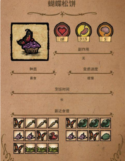 除了回20血以外,使用蝴蝶松饼还会回37.5点饥饿值和5点san值。